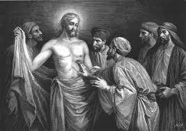Los otros discípulos le dicen hemos visto al Señor de las llagas, al Señor del Perdón para todos los pueblos(Jn 20, 25). Pero él duda, tiene su Jesús inerior, no quiere otro. Por pide un signo (si no veo en sus manos la huella de los clavos…). No es un signo de «resurrección sin más», sino de resurrección en la carne, como prncipio de misión y perdón universal. Pide un signo y Jesús se lo concede, en eta bellísima parábola pascual: