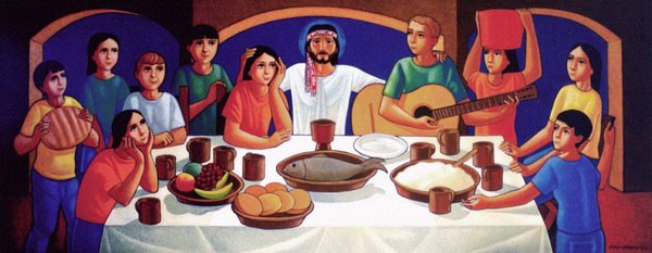 A la liturgia pascual en casa de Simón Leproso (Mc14, 3-9) sigue en Marcos la cena de pascua que los discípulos proponen a Jesús, ratificando la tradición judía (14, 12). Jesús acepta esa propuesta, pero sustituye la celebración de la Pascua antigua que le piden los discípulos por una fiesta de solidaridad mesiánica, iniciada por el homosexual marginado y despreciado del agua de Jerusalén.